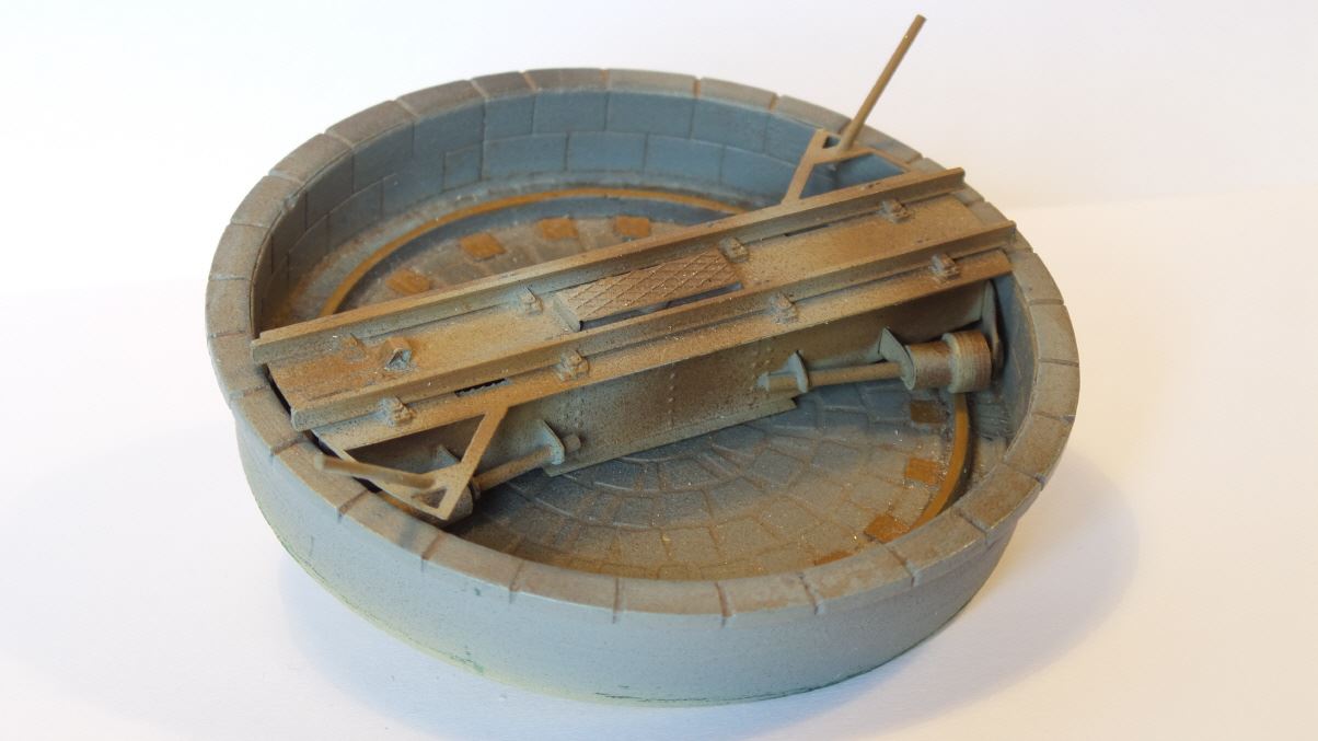 Drehscheibe in vorbildlicher Grubenbauweise. ( Grube aus Kunststoff, Bühne aus feinem Messing) Riegel, Handhebel