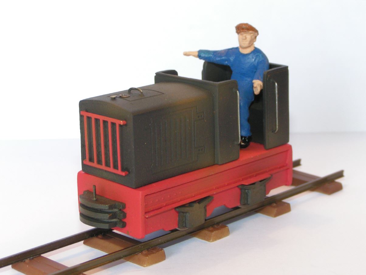 Gmeinder Feldbahnlokomotive ohne Dach mit Figur