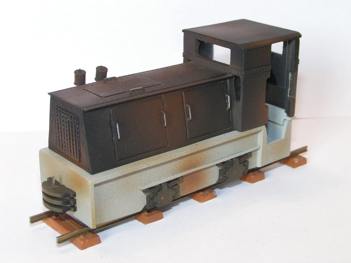 Gmeinder Feldbahnlokomotive HF 50 B mit niedrigem Führerhaus, mit Figur