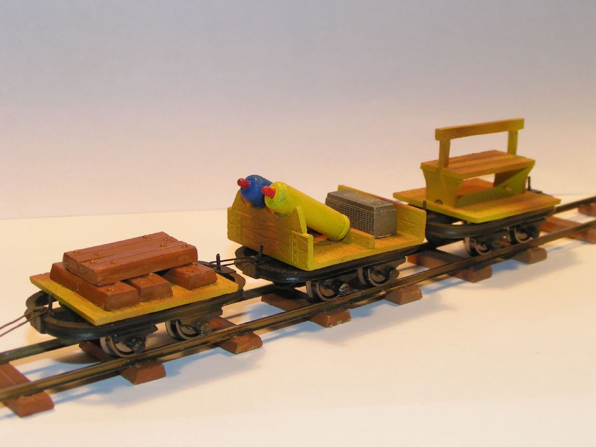 Die drei Loren sind einzeln in dieser Farbe und Ausführung nicht erhältlich. Achslager Metall. Aufbau aus Kunststoff.