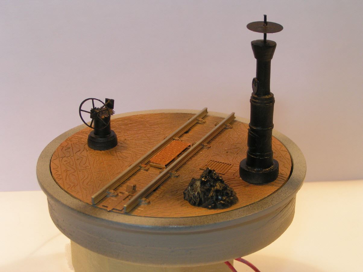 Drehscheibe in vorbildlicher Holzbohlen Abdeckung ( aus feinem Messing) Dampfkessel, Handrad, Kohlehaufen.