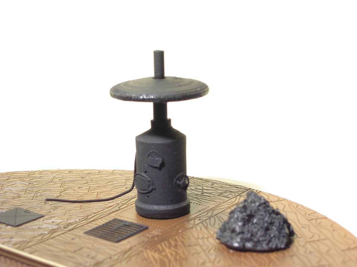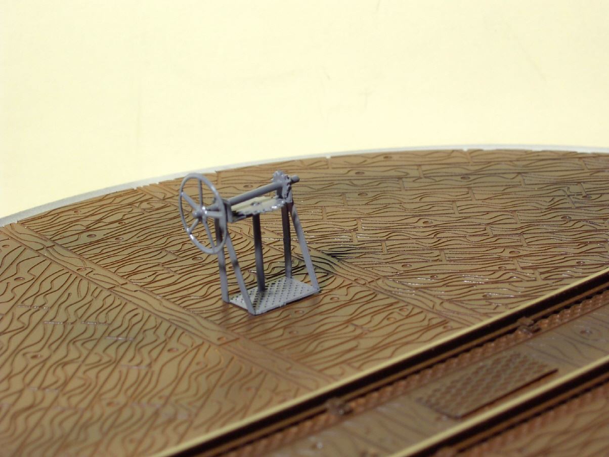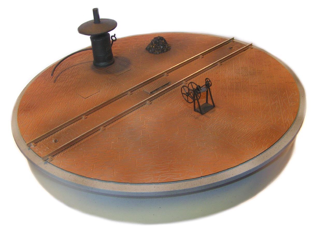 Drehscheibe in vorbildlicher Holzbohlen Abdeckung (aus feinem Messing) Dampfkessel, Handrad, Kohlehaufen.