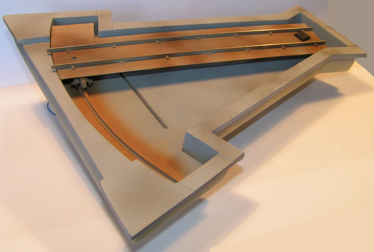 Segmentscheibe in vorbildlicher Gruben - Bauweise mit eletrischen Endabgeschalteten Antrieb, nur die beiden Außenschienen sind endabgeschaltet. es können 3 Auffahrgleise angebracht werden. Handkurbel liegt bei.