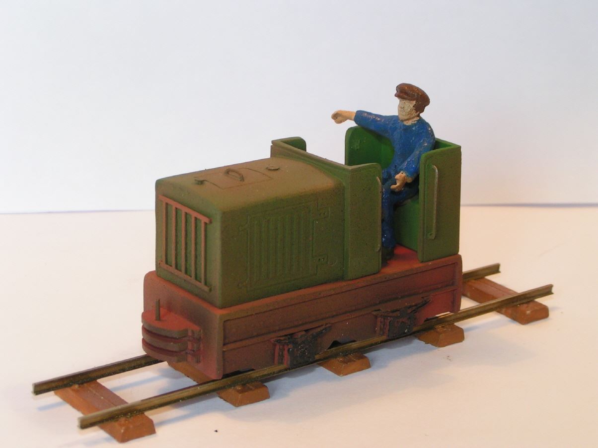 Gmeinder Feldbahnlokomotive ohne Dach mit Figur
