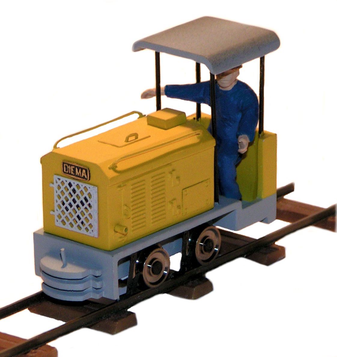 Diema Feldbahnlokomotive mit kleinem Dach und mit Figur