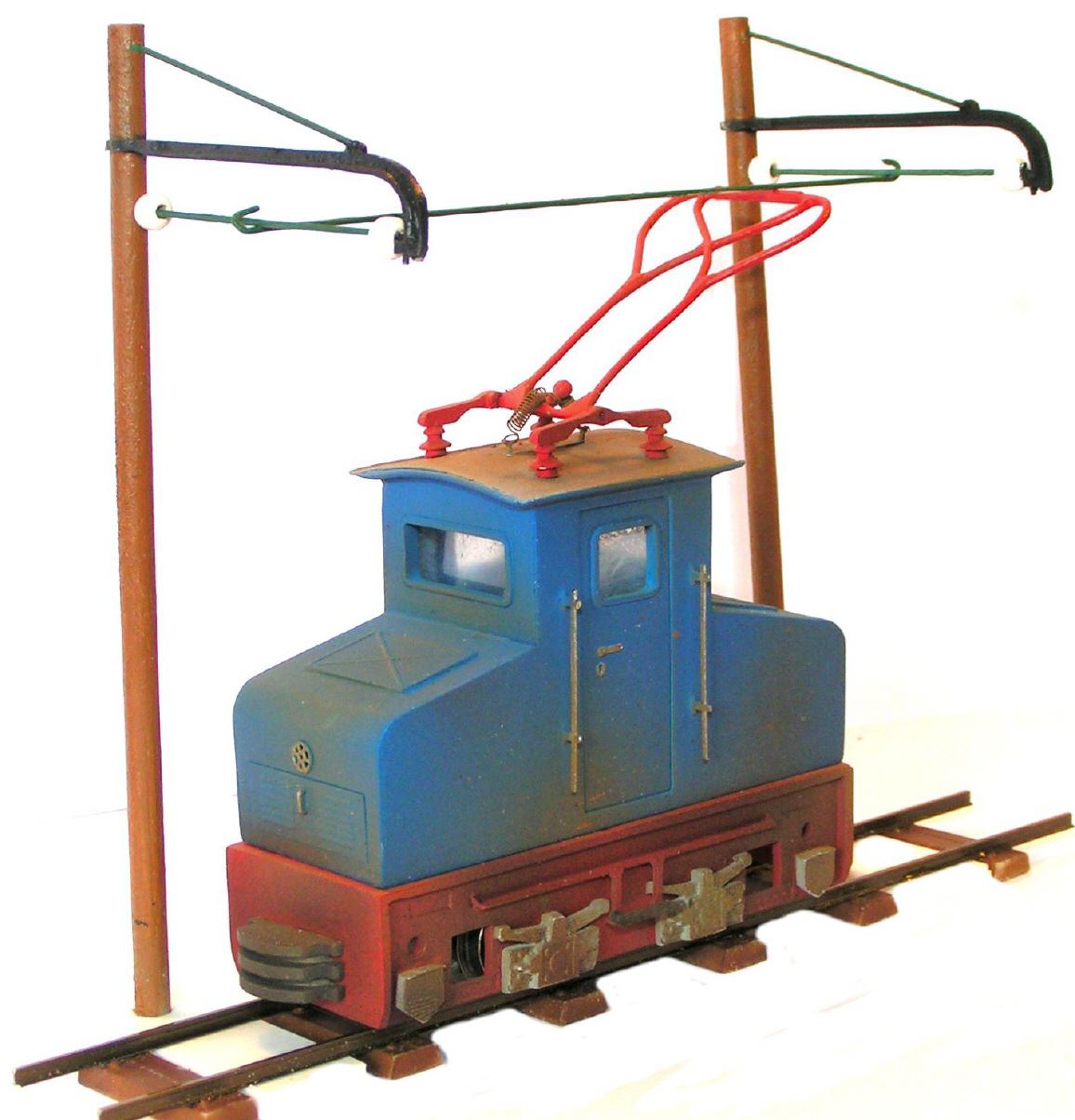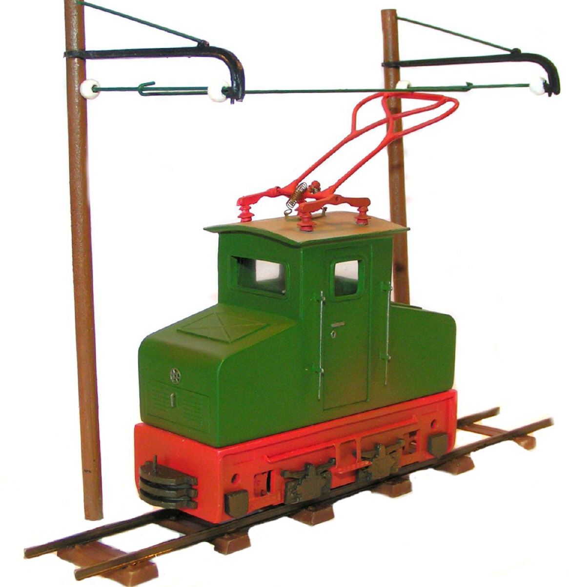 Der Lyrabügel wurde extra für die Spur Oe Feldbahn nach einem realem Vorbild entwickelt, der Bügel ist funktionsfähig. Er wird mit zwei Federn an die Oberleitung gedrückt.